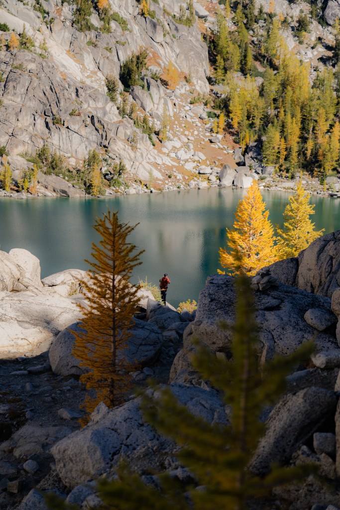 The next morning we were packed up and ready to explore the heart of the Enchantments Trail by 9 am. The sight of numerous little alpine lakes lined with larches is a treat to the eyes – especially in the small window between late September and mid October when the larches start to turn yellow. There is so much beauty packed in this small region that it is easy to lose track of time which almost happened to us and we ended up hiking the last few miles in the dark so we suggest planning your time in the Core zone accordingly.