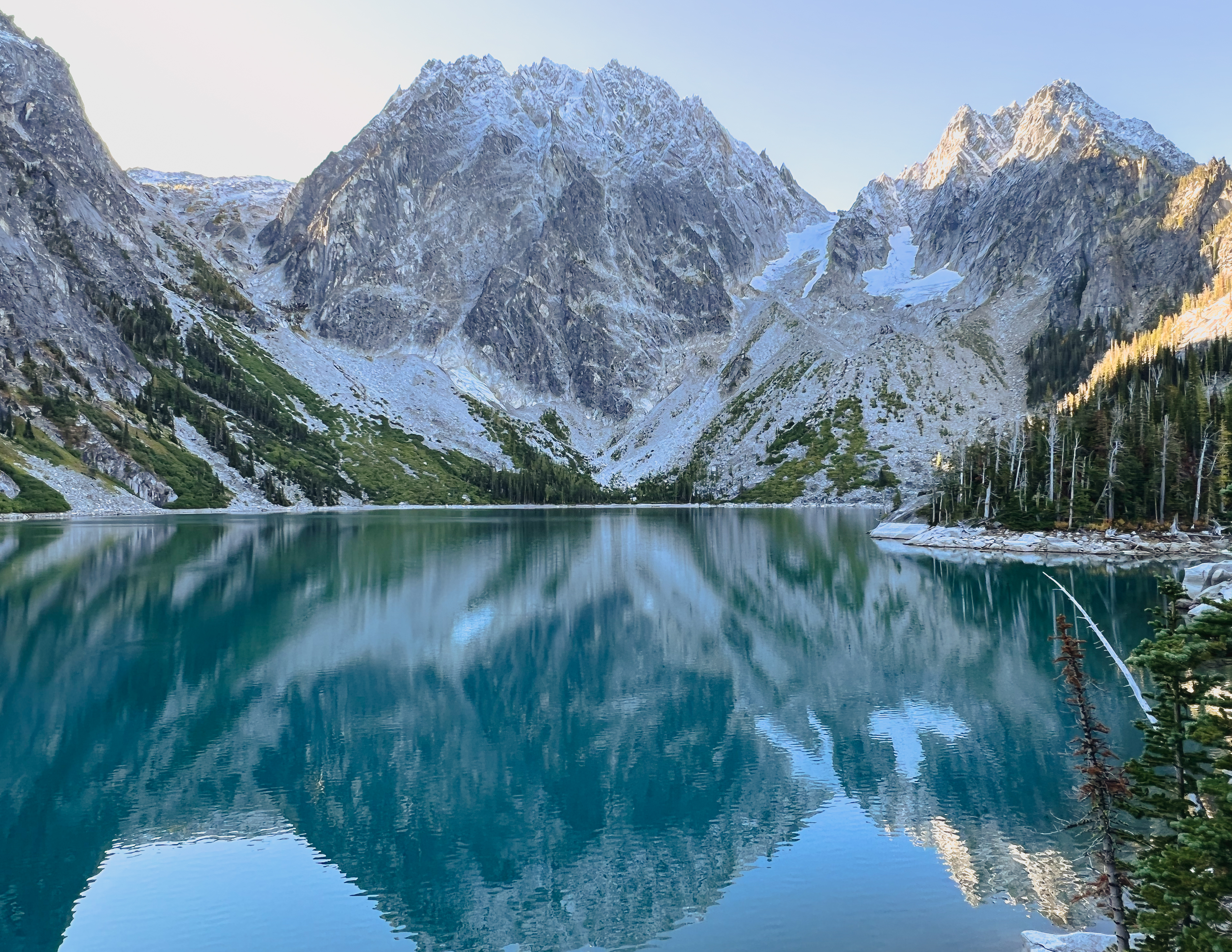 There are quite a few campsites around the lake for those backpackers carrying a camping permit for Colchuck lake.