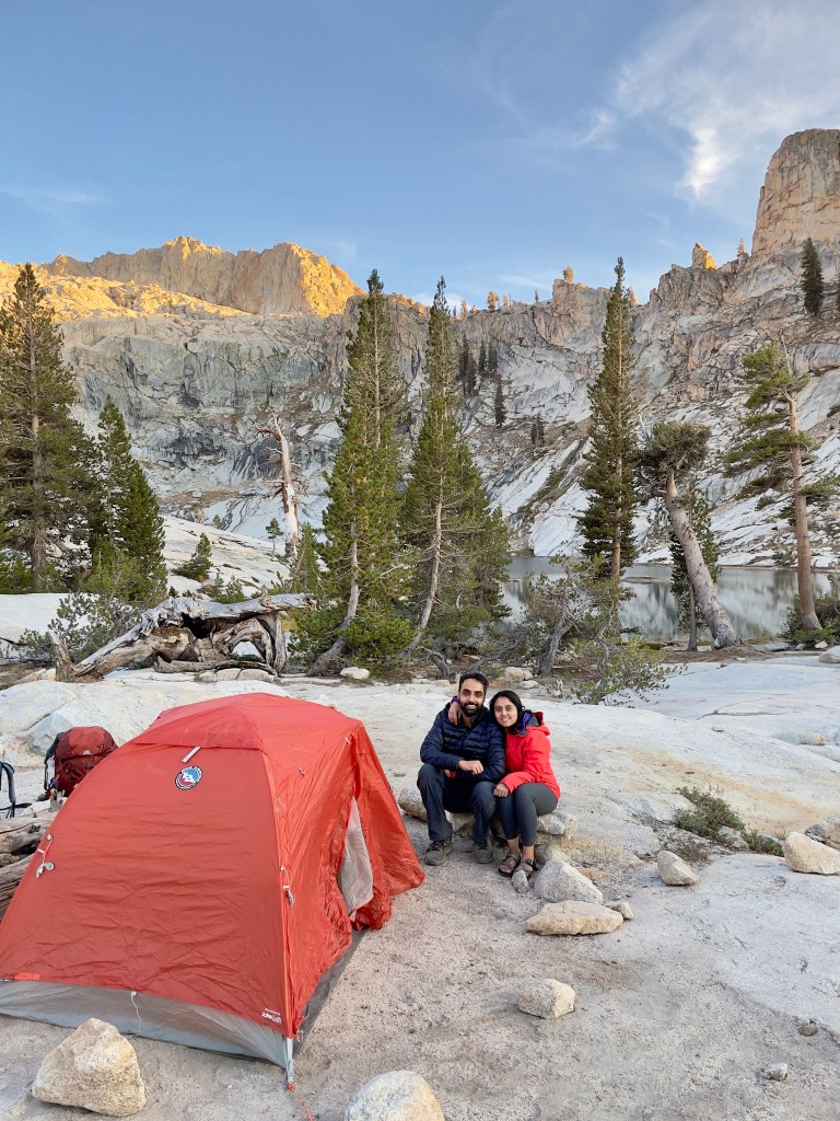 We were at our campsite just in time to setup camp, locate bear boxes and pit toilets before it got dark. It would have been ideal to wrap up dinner before sun down although we did have our torch lights and head lamps to help. Storing anything scented in bear boxes is absolutely essential. In addition to stowing all edibles and toiletries into a bear canister that we carried with us, we also locked up the canister in a bear box close to our campsite. Also, as a general tip when backpacking, not specific to Sequoia NP, we highly recommend getting to the campsite well before sun down and allowing enough time to set up camp, cook meals and eat because remote locations like these get dark very quickly.